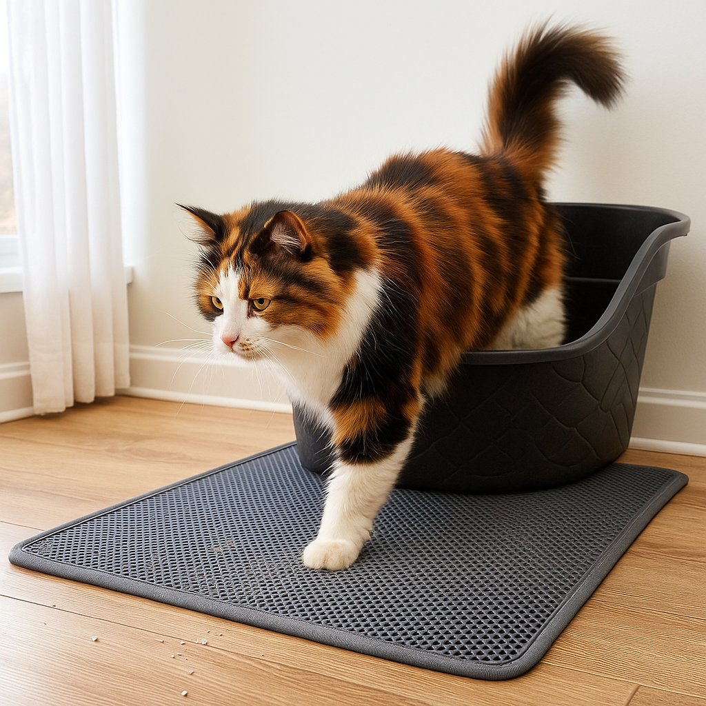 Il fondo antiscivolo mantiene il tappetino fermo anche quando il gatto entra o esce rapidamente dalla lettiera, assicurando comfort e sicurezza durante l’utilizzo.