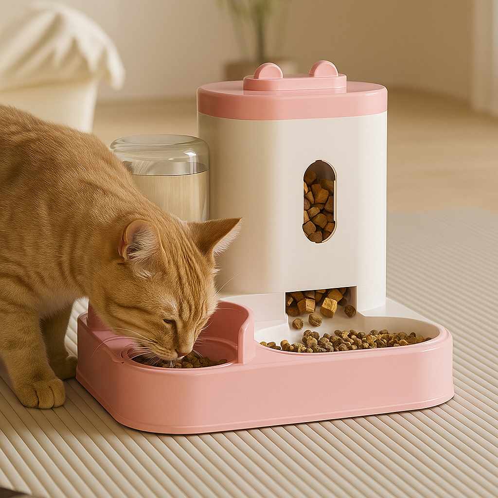 Mantieni il tuo gatto sempre nutrito e idratato con il Dispenser Automatico di Cibo e Acqua DuoFeed – praticità e benessere in un solo gesto